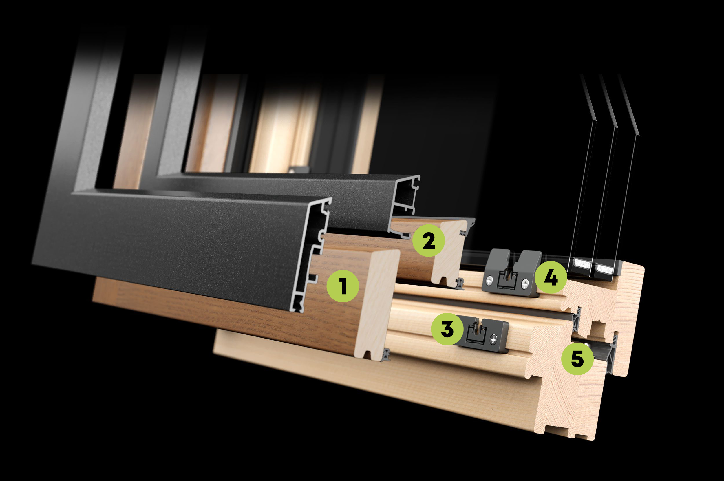 Die einzigartige Konstruktion trennt erstmals das bewitterte Außenfenster und das wohnliche Innenfenster: